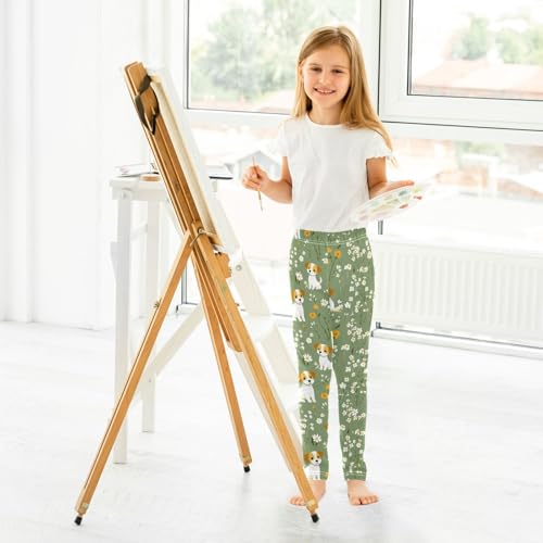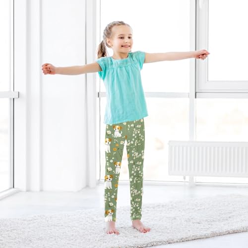 Dog and Flower Floral Girls Casual Leggings for Kids Printed Long Pant Bottoms Stretch and Soft 6