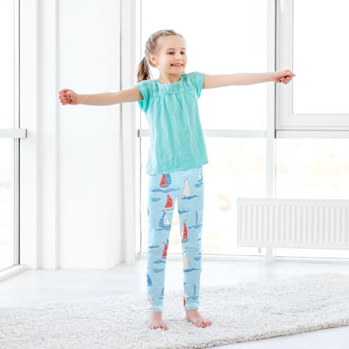 Cute Sailboats Girls' Leggings Toddler Doodles Waves Kids Yoga Pants Dance Active Tights 4T 6