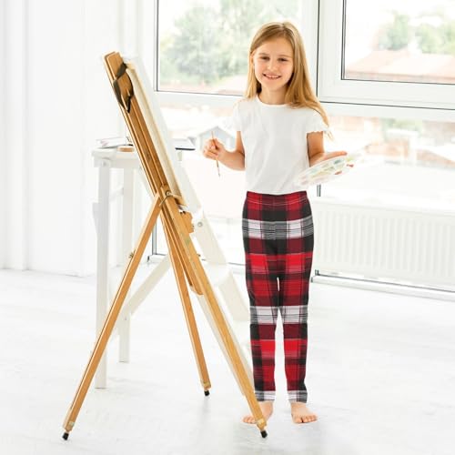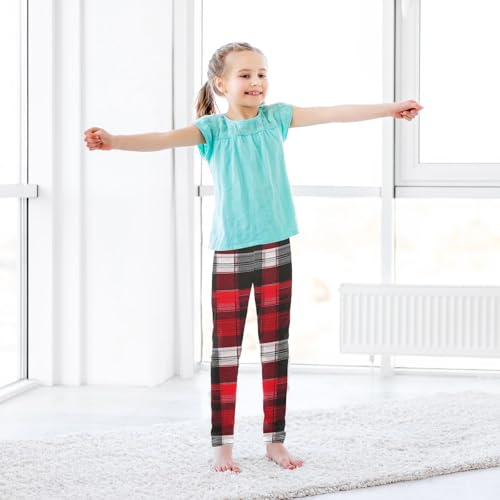 Plaid Black Red Girls Leggings,Workout Leggings for Girls Toddler Athletic Legging Size for 3-10T 4