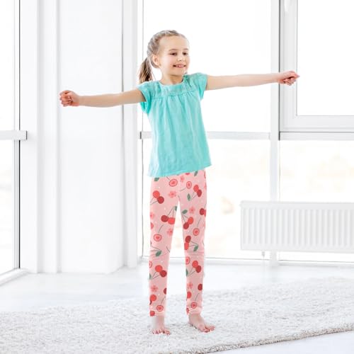 Cherry Love Heart Girls Leggings,Workout Leggings for Girls Toddler Athletic Leggings Size for 3-10T 1