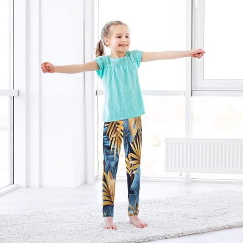 Toddler Girls Leggings Printed Yoga Pants Leggings Golden Blue Leaves for Kids 4