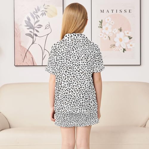 White Leopard Print Summer Pajamas Set Soft Satin Pjs Sets 2 Piece Short Sleeve Sleepwear Casual Clothes 6