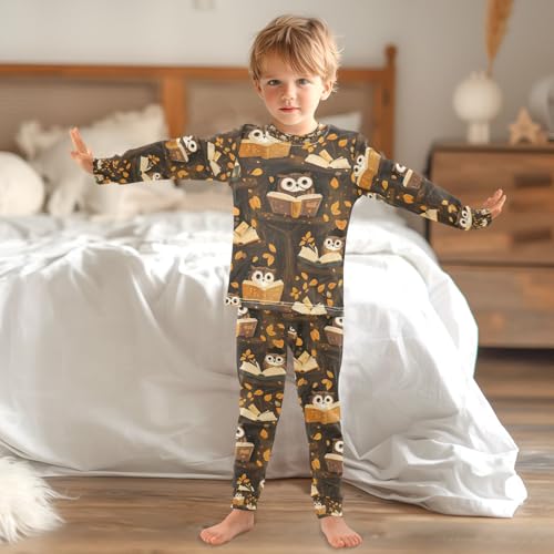 HOT ! senya Owl Reading on Branches Pajamas Set Long Sleeve Soft Cotton Sleepwear 2 Piece