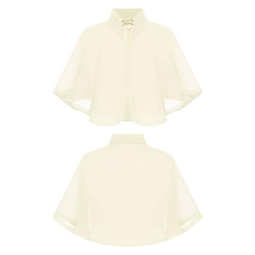 Choomomo Girls Chiffon Shrug with Brooch Stand Collar Lace Bolero Cardigan Cape Elegant Shawl Wrap 5