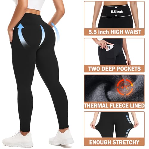NEW YOUNG 3 Pack Fleece Lined Leggings with Pockets for Women,High Waisted Thermal Warm Winter Yoga Pants 5