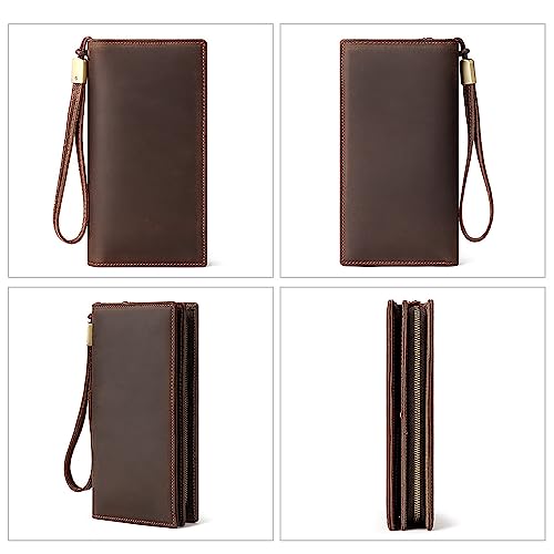 Genuine Leather Long Bifold Wallets for Men Slim RFID Blocking Vintage Zipper Card holder Wallet with Coin Pocket… 1