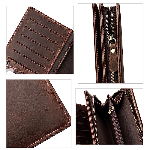 Genuine Leather Long Bifold Wallets for Men Slim RFID Blocking Vintage Zipper Card holder Wallet with Coin Pocket… 5