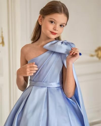 More information about Molisa One Shoulder Flower Girl Dresses for Wedding Satin First Communion Pageant Dress Princess Kids Ball Gown with Bow