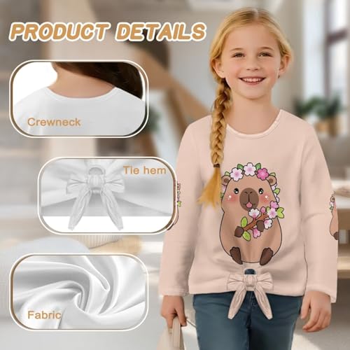 Ystardream Girls Long Sleeve Shirts Crewneck Winter Tops with Tie Hem Fall Clothes 4
