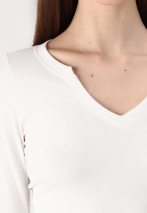 Ribbed Seamless Fabric Notch-Neck Top - Long sleeved top 3