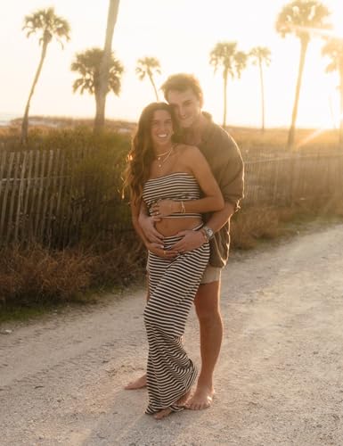 More information about Women's Striped Two Piece Sets Cropped Tube Top and Wide Leg Pants Lounge Matching set with Pockets