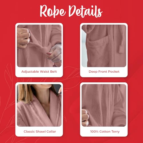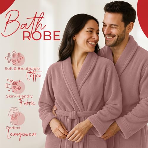 • ✨𝐔𝐧𝐢𝐬𝐞𝐱 𝐅𝐢𝐭 𝐟𝐨𝐫 𝐖𝐨𝐦𝐞𝐧 & 𝐌𝐞𝐧: Designed as a one-size, gender-neutral robe, this dusty-rose bathrobe fits both men and women comfortably, offering versatility for all users.