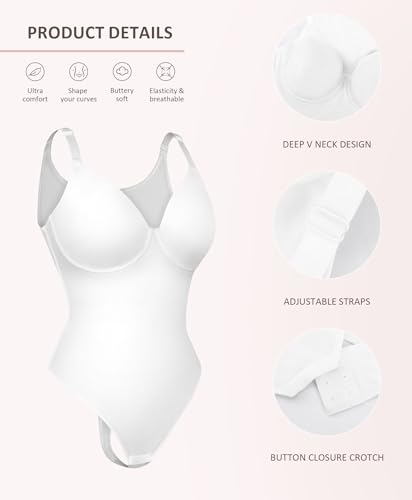 HOT ! FeelinGirl Shapewear Bodysuits for Women Tummy Control, Thong Body Suit Deep V Neck Corset Top Body Shaper