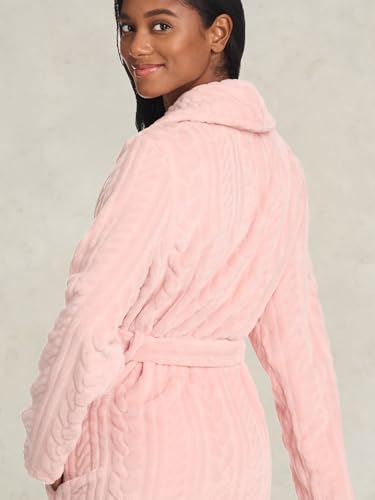 • Women's Plush Robe: Ladies bathrobe boasts a sculptural design of wide ribbing for a textured look and feel. Winter robe is fabricated from a soft plush material for warmth
