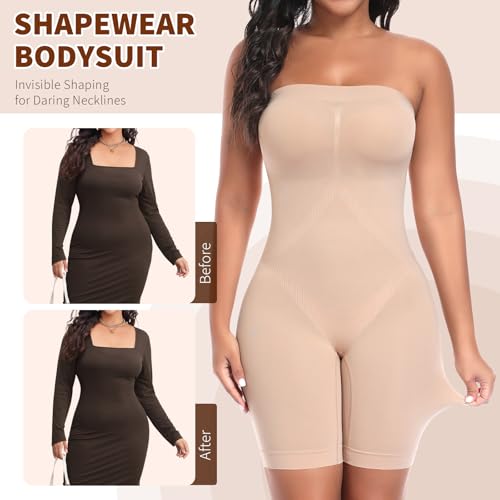 Womens Strapless Shapewear Bodysuit Tummy Control Full Body Shapewear Butt Lifter Body Shaper with Removable Straps 1