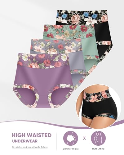 • SHOW PERFECT BODY SHAPE: These womens briefs come in a variety of floral colors to make your everyday more fun. The floral printed is pretty to the touch, flattering and stretchy, covering the upper part of the muffin and covering the buttocks to show off your figure perfectly. In addition, the wide-rimmed printed women's panties look very stylish and glamorous
