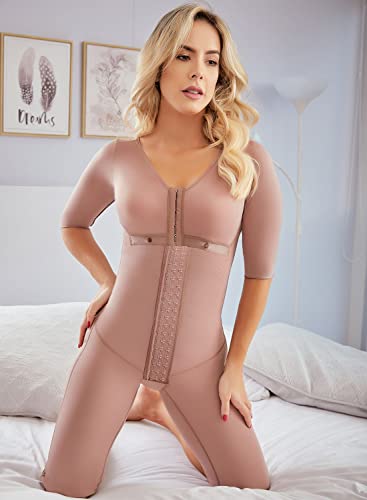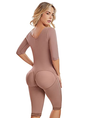 0710 Fajas Colombianas Moldeadoras with Sleeves & Bra, Tummy Control Shapewear in Powernet, Knee-Length, 3-Row Hooks 1