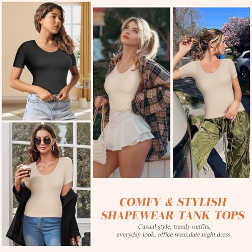 Shapewear Tops for Women Tummy Control Tank Tops Short Sleeve Seamless Compression Tanks Body Shaper Camisole 3