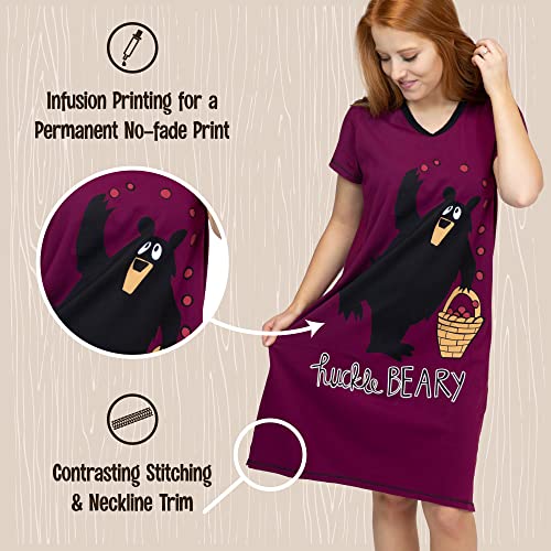 Lazy One Women's Nightgown, Funny V-Neck Sleep Shirt for Women, Bear & Moose Pajama Shirts 6