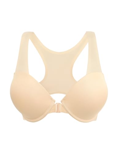 Women's Push Up Racerback Front Closure Bras Seamless Plunge Padded Underwire Add 2 Cup Sizes Bra 6
