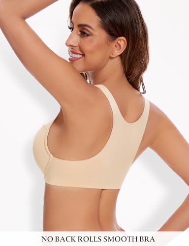 Women's Push Up Racerback Front Closure Bras Seamless Plunge Padded Underwire Add 2 Cup Sizes Bra 4