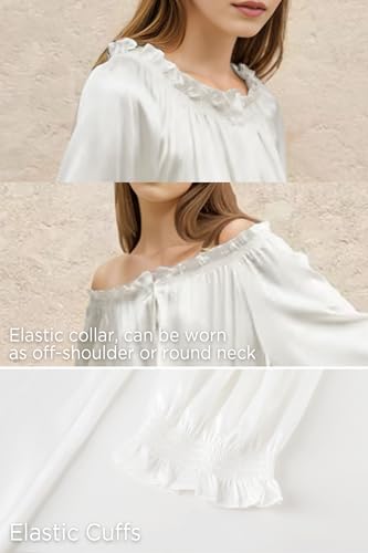• Design: Vintage pleated round neckline with adjustable collar (round neckline or off the Shoulder), classic court sleeves, and elastic cuffs for a stylish and comfortable fit