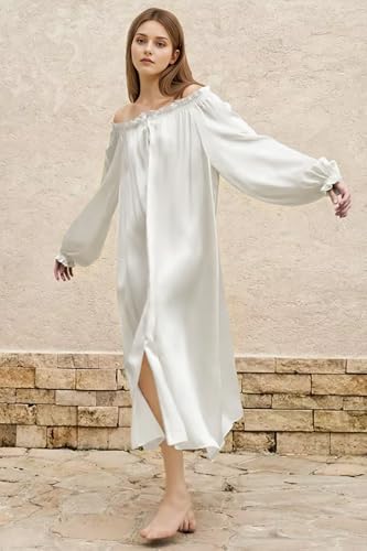 HOT ! PRODESIGN Long Nightgowns for Women - Long Sleeve Vintage Off the Shoulder Sleepwear Victorian Nightdress Button Up Nightgown
