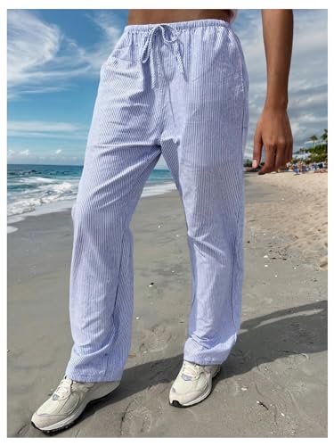 More information about GORGLITTER Women's Striped Boxer Pants High Waisted Wide Leg Drawstring Causal Lounge Pajama Trousers