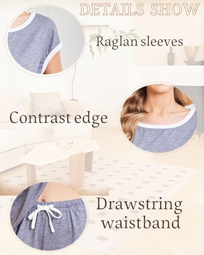 • Match: This is a fashionable and versatile short sleeved pj set. The raglan sleeve top can be paired with denim pants, denim shorts, or skirts to create a trendy look; Simple and lightweight shorts, suitable for any T-shirt