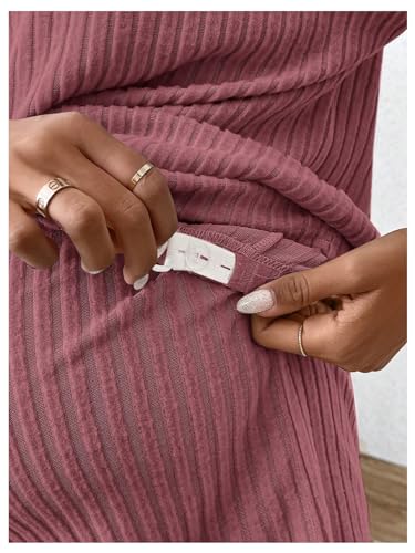 MakeMeChic Women's Maternity Pajamas Lounge Sets 2 Piece Outfits Short Sleeve Rib Knit Tops and Shorts Sets Pregnancy Clothes 4