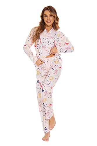 More information about GLOBAL Women Cotton Pajamas Long Sleeve PJs Button Down Sleepwear S-3XL