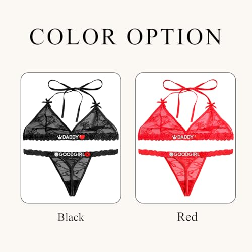 More information about Lace Bra and Thong Set for Women Sexy Cute Metal Letters Charm Breathable Bikini Underwear with Stretch Fit