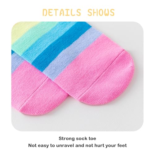 • High Quality: The elastic cuffs are not tight which causes less pressure on girls’ sensitive calf and gives more room for their feet to grow; Rainbow socks kids, fit for three to twelve years old girls