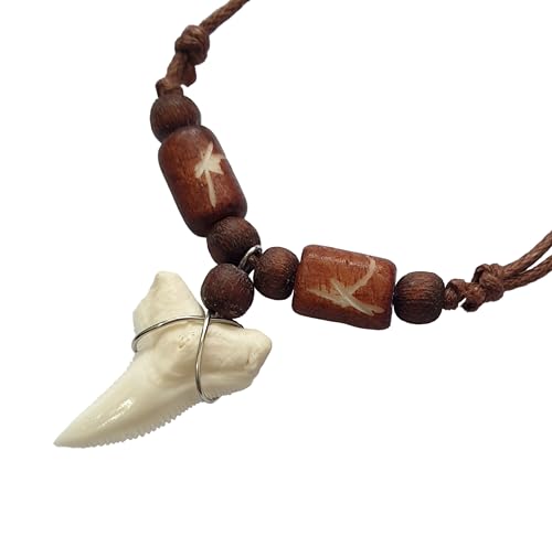 More information about Genuine Mako Shark Tooth Necklace, Unisex Adult, 16-32 Inch Adjustable, Brown Wooden Beads & Waxed Cords, BA371