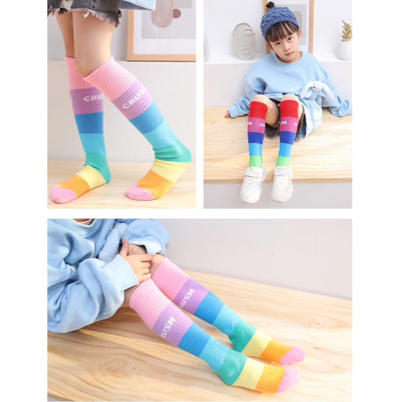 Colorful striped stockings Seamless Cotton Knee Length Socks Candy Rainbow Color Children Casual Boys & Girls Long Socks 1