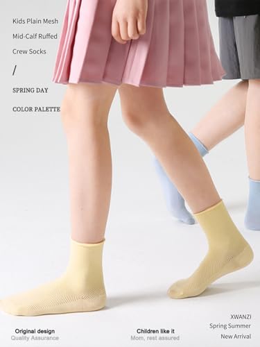 Kids Socks Solid Ruffed Crew Socks Cotton Knit Boneless Mesh Mid-Calf Casual Socks for Kids 5 Pairs 7