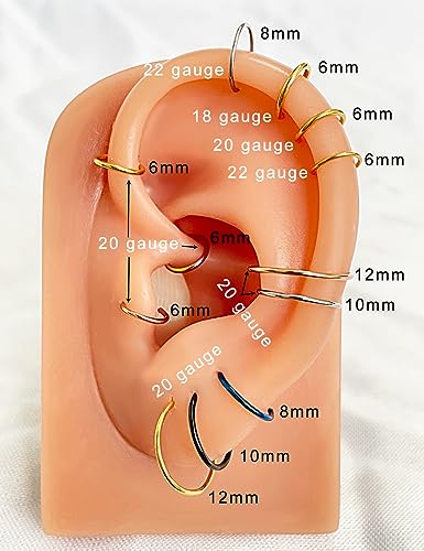 22G 20G 18G 6-12mm Gold Silver Rose Gold Black Blue Rainbow Small Hoop Earrings for Cartilage Nose, Piercing Hoop Ring Nose Rings Hoop Tragus Helix Daith Rook Snug Piercing Rings Set of 4 Set of 2 5