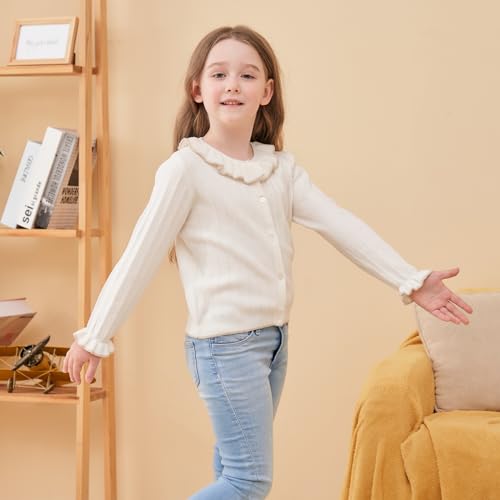 Girls Cardigan Sweet Ruffle Collar Sweater Button Long Sleeve Knit Tops for Girls Outfits 6