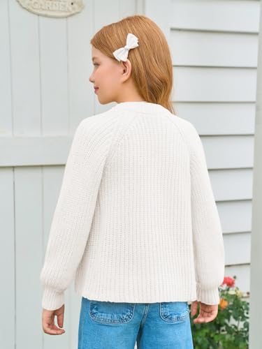 Haloumoning Girls Cardigan Button Down Long Sleeve Chunky Knit Sweater Fall Cute Outerwear Coat 5-14Y 2