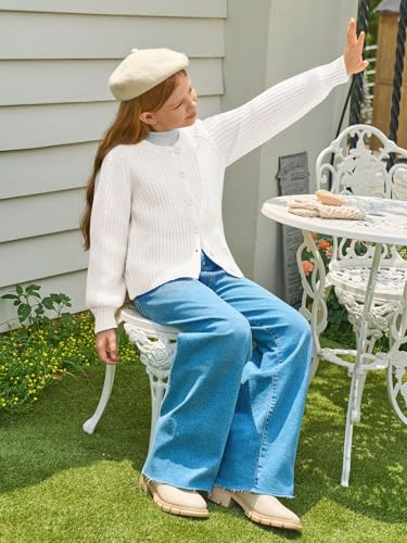 Haloumoning Girls Cardigan Button Down Long Sleeve Chunky Knit Sweater Fall Cute Outerwear Coat 5-14Y 6