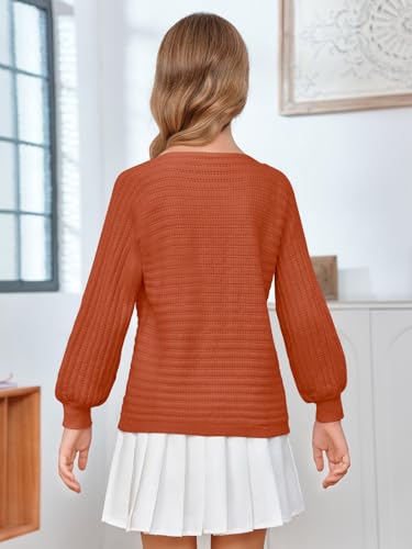Mafulus Girl's Puff Long Sleeve Crewneck Pullover Sweaters Kids Cable Knit Hollow Out Slouchy Cute Fall Jumper Tops 5-14T 4