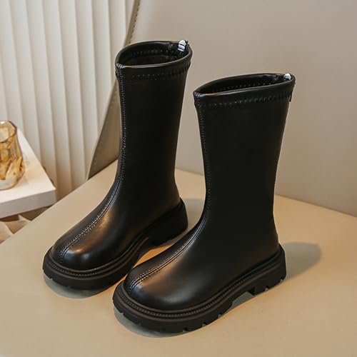 Knee Boots for Kid Girls Fashion Platform Flat Heel Boots Cute Zipper Winter Leather Non-Slip Long Boot Shoes 5