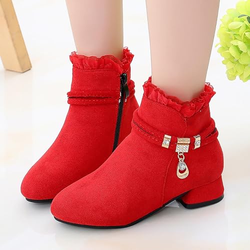 Kids Black Boots Girls Dress Boots Ankle Short Boots Toddler Ankle Boots Low Chunky Heel Side Zipper Dress Booties 4