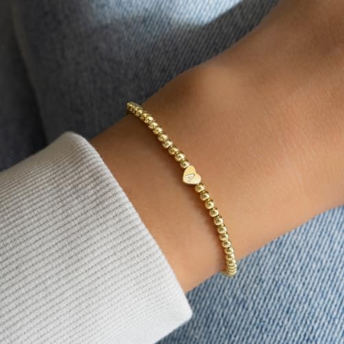 Heart Initial Bracelets for Women Girls - 14K Gold Plated Letter Initial Bracelet Beaded Heart Bracelets for Women Trendy Kids Teen Girl Gifts Trendy Stuff Gold Jewelry 1