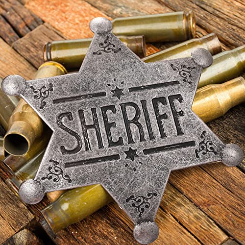 • Classical Design: Our Vintage Sheriff Badge is Inspired by Western Elope Styles with Big and Mini Hexagon Stars Design and Classical Concave Moire Cloud Patterns at 6 Corners.