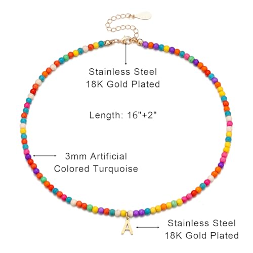 • Material: These dainty Heart initial beaded necklace is made of colorful artificial turquoise beads and 18K Really Gold Filled heart. This gold initial necklace pendants is crafted from high-quality brass,suitable even for sensitive skin. When you wear it every day, you'll feel a comfortable embrace that confidently showcases your original feminine charm