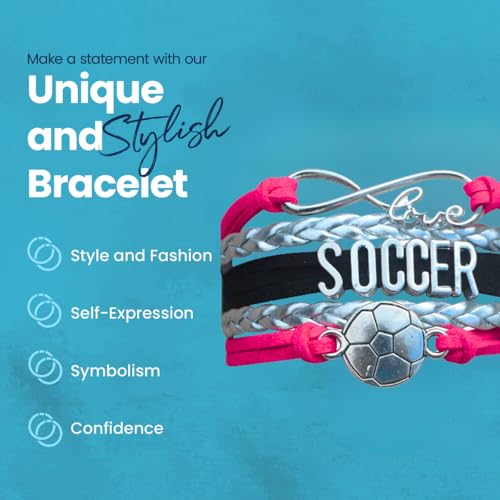 • A Charm Bracelet For Soccer: This Soccer Infinity Bracelet is Adjustable from 5 inches to 7 inches, this sporty Soccer bracelet features a sturdy adjustable clasp to hold it in place.