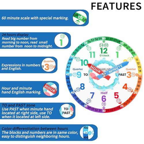 • EASY & JOYFUL OF TIME LEARNING: Time teaching watch is designed to help kids learn how to tell the time quickly and effectively. Kids analog watch keeps them engaged and interested in learning how to read the time.