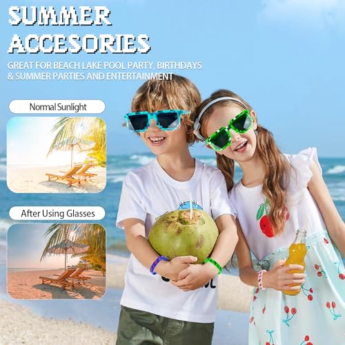 24Pack Pixel Theme Party Favors, 12 Pixelated Sunglasses and 12 Silicone Bracelets, Video Game Gamer Ideal Gift for Kids and Adults Birthday Party Decorations Supplies 7