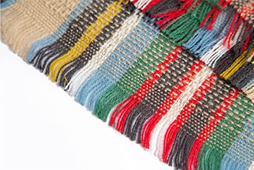 Girls Tartan Scarf With horn buckle,Plaid Wrap,Poncho Cape Shawl For Kids,Winter Warm Scarves,One Size 4